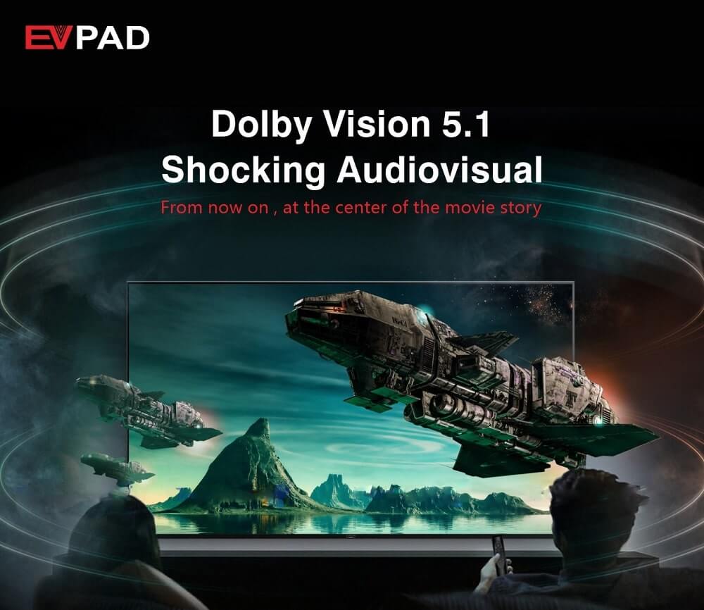 Trải nghiệm tương lai của giải trí gia đình với EVPAD 10S TV Box và Dolby Vision 5.1. Thời gian xem TV của bạn sẽ mãi mãi được biến đổi.